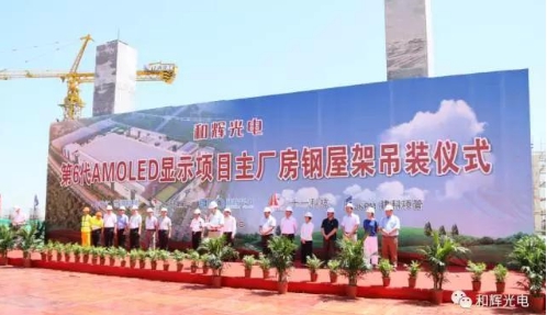 提要: 8月28日上午,上海和輝光電第6代AMOLED顯示項(xiàng)目主廠房鋼結(jié)構(gòu)屋架吊裝儀式在和輝光電二期工地現(xiàn)場舉行。